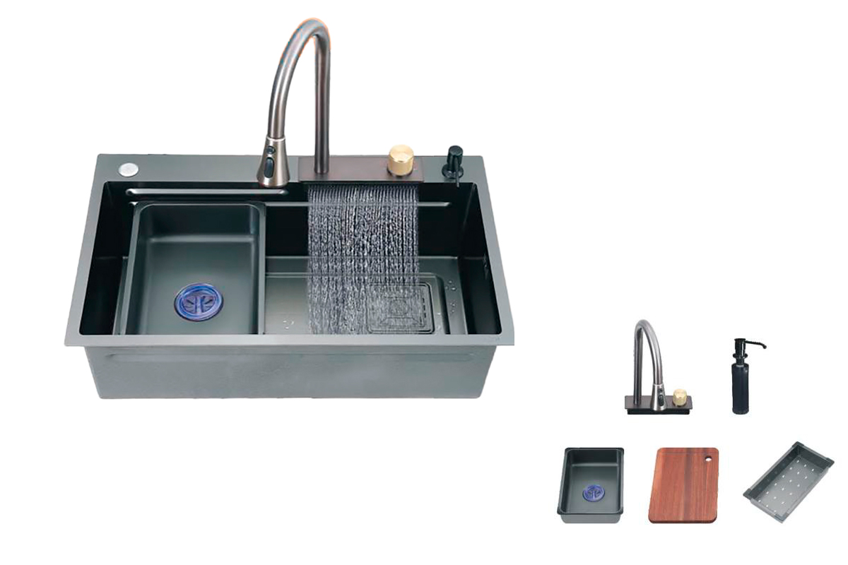 Kit de tarja Charlotte 75 x 46 x 23 cm, acabado negro mate